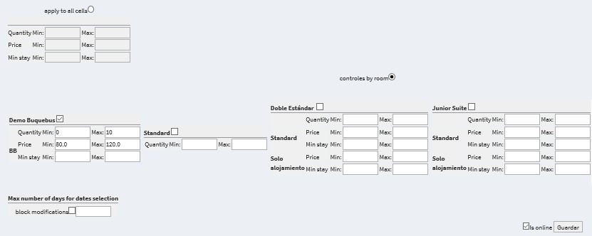 bien límites diferentes para cada tipo de habitación (opción “controles by